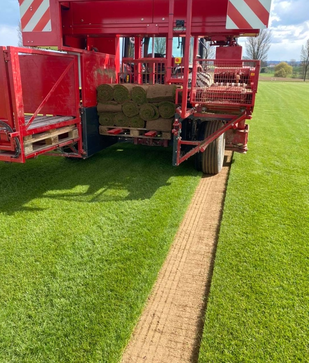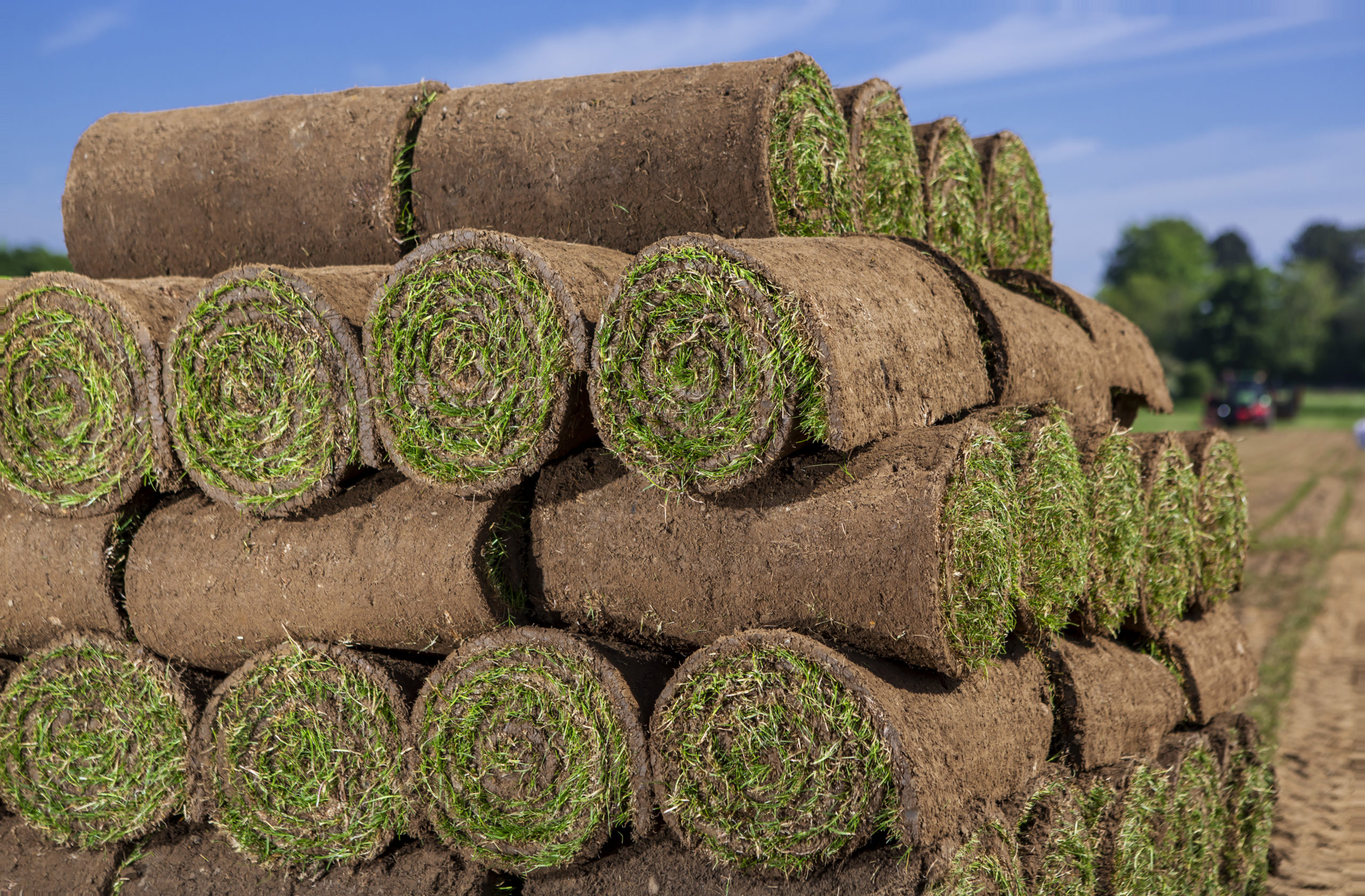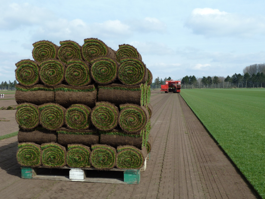 prosto z plantacji na palety transportowe trafia trawa zawinięta w rolkę i niemal natychmiast ładowana jest do samochodu dostawcy.