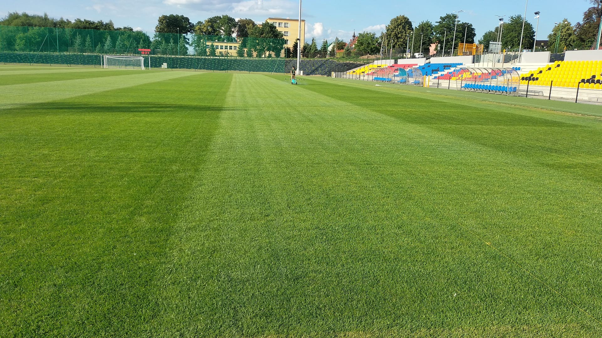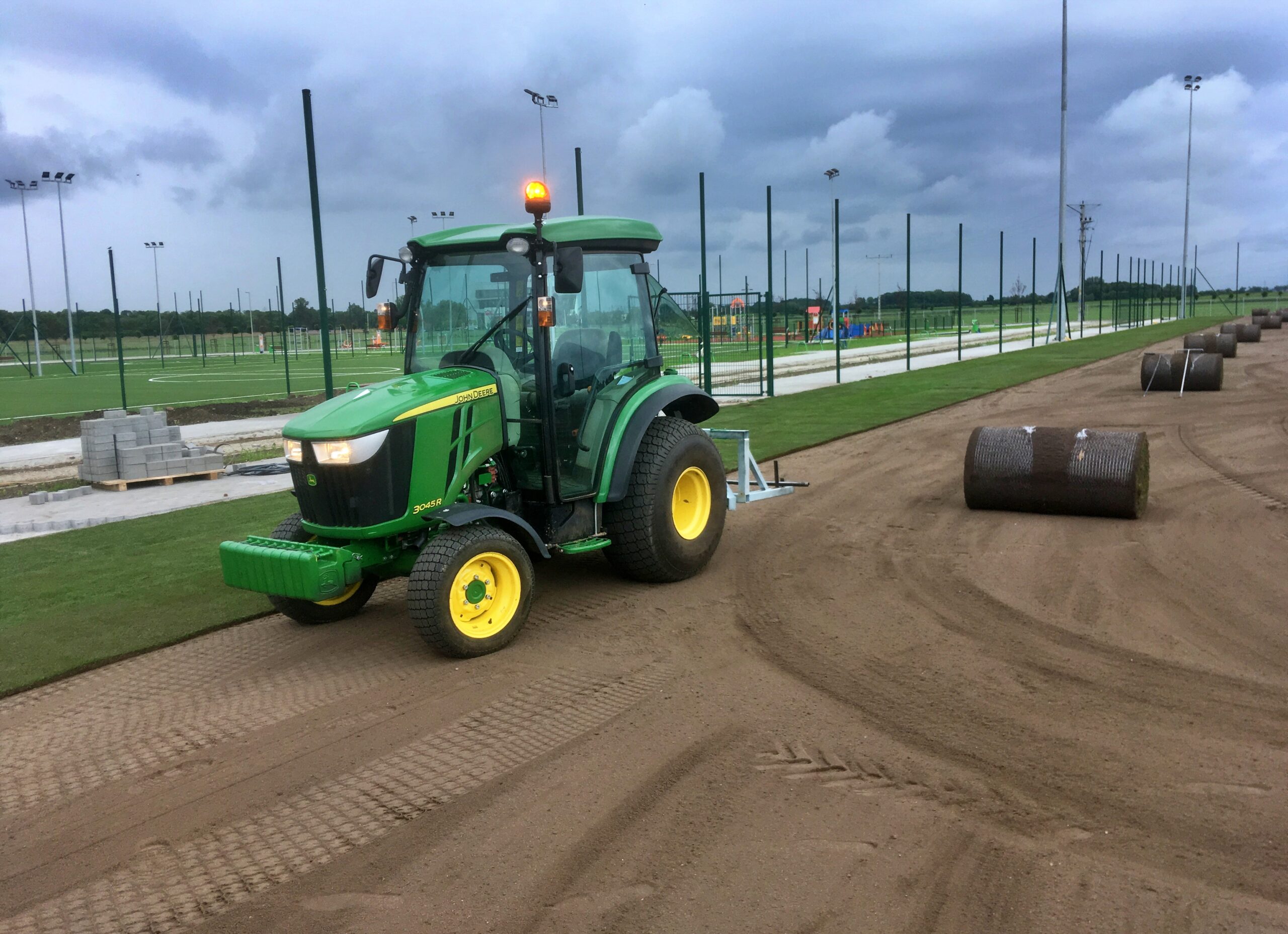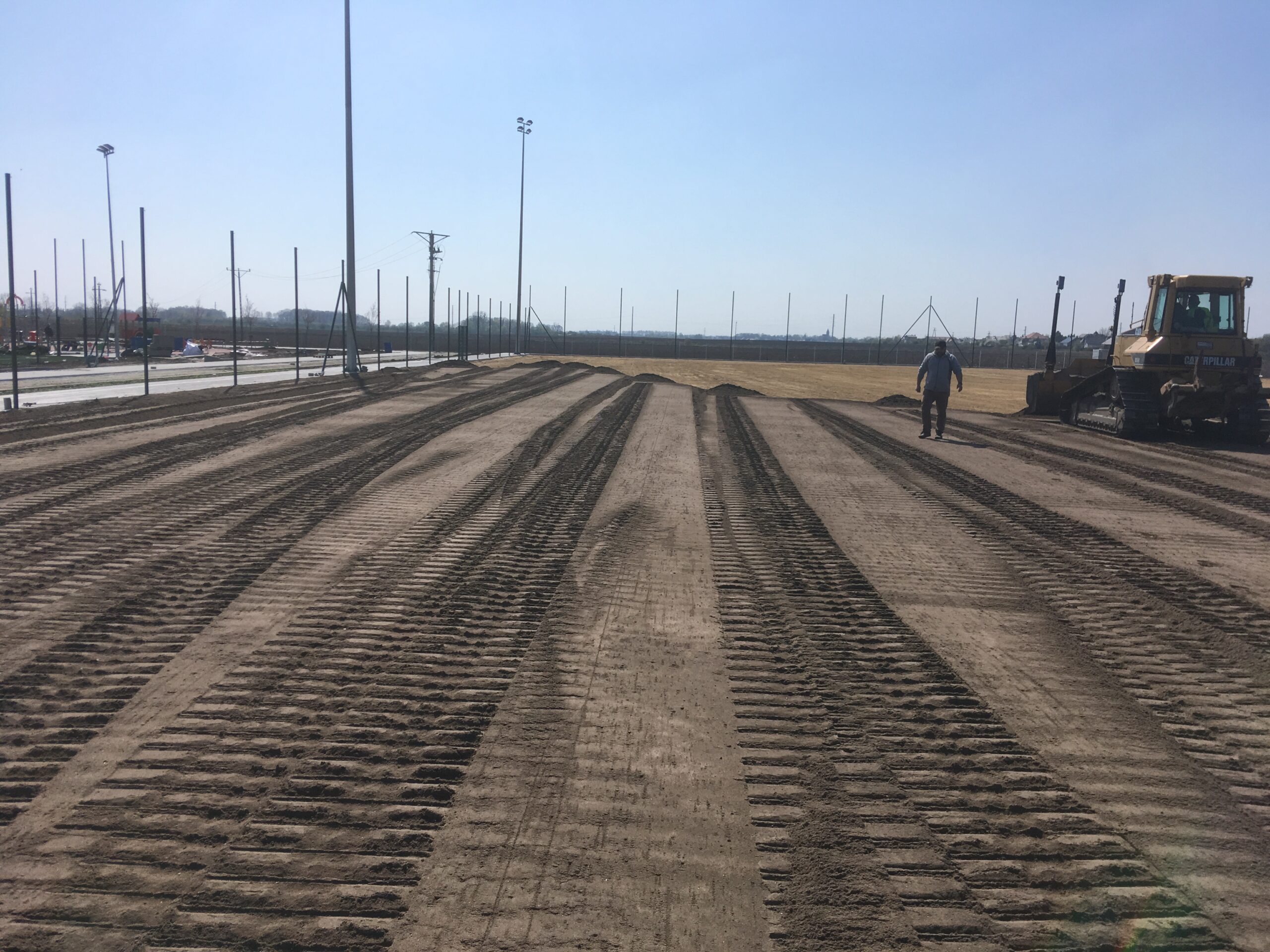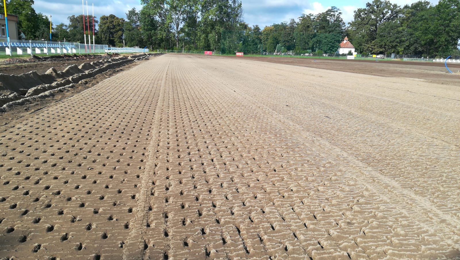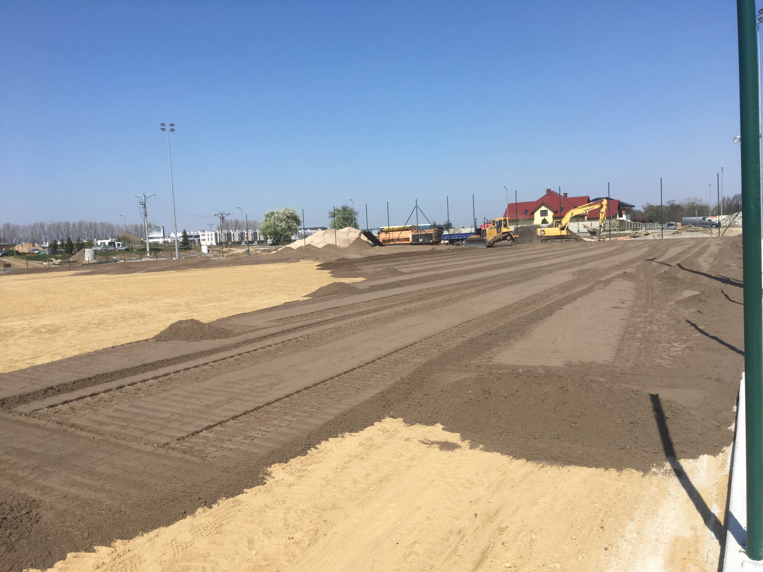 Podłoże profilujemy równiarkami ciągnionymi z laserowym systemem sterowania, następnie wykonywane jest darniowanie trawą z rolki lub siew mechaniczny – perforacyjny.